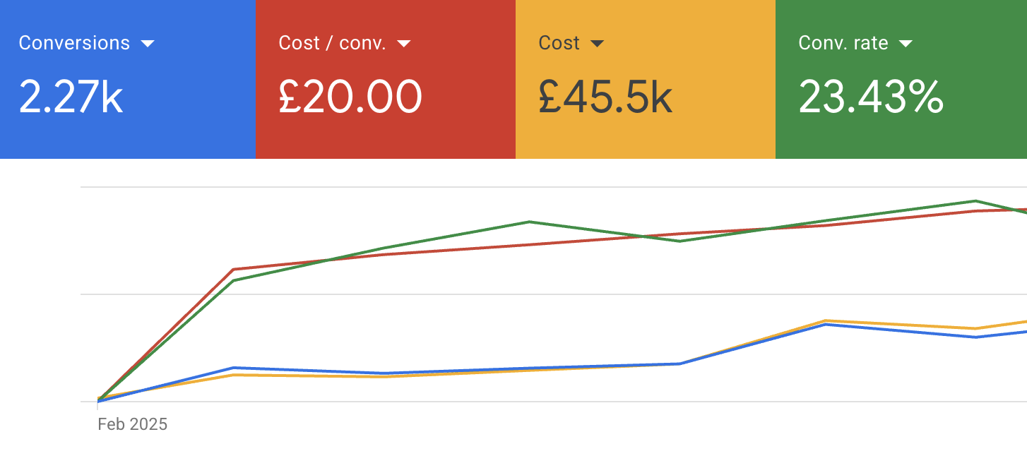 Since then, lead volume has increased from around 100 per month to 600 per month, and they have quadrupled their ad spend with confidence. Ninety per cent of their business now comes through Google Ads.