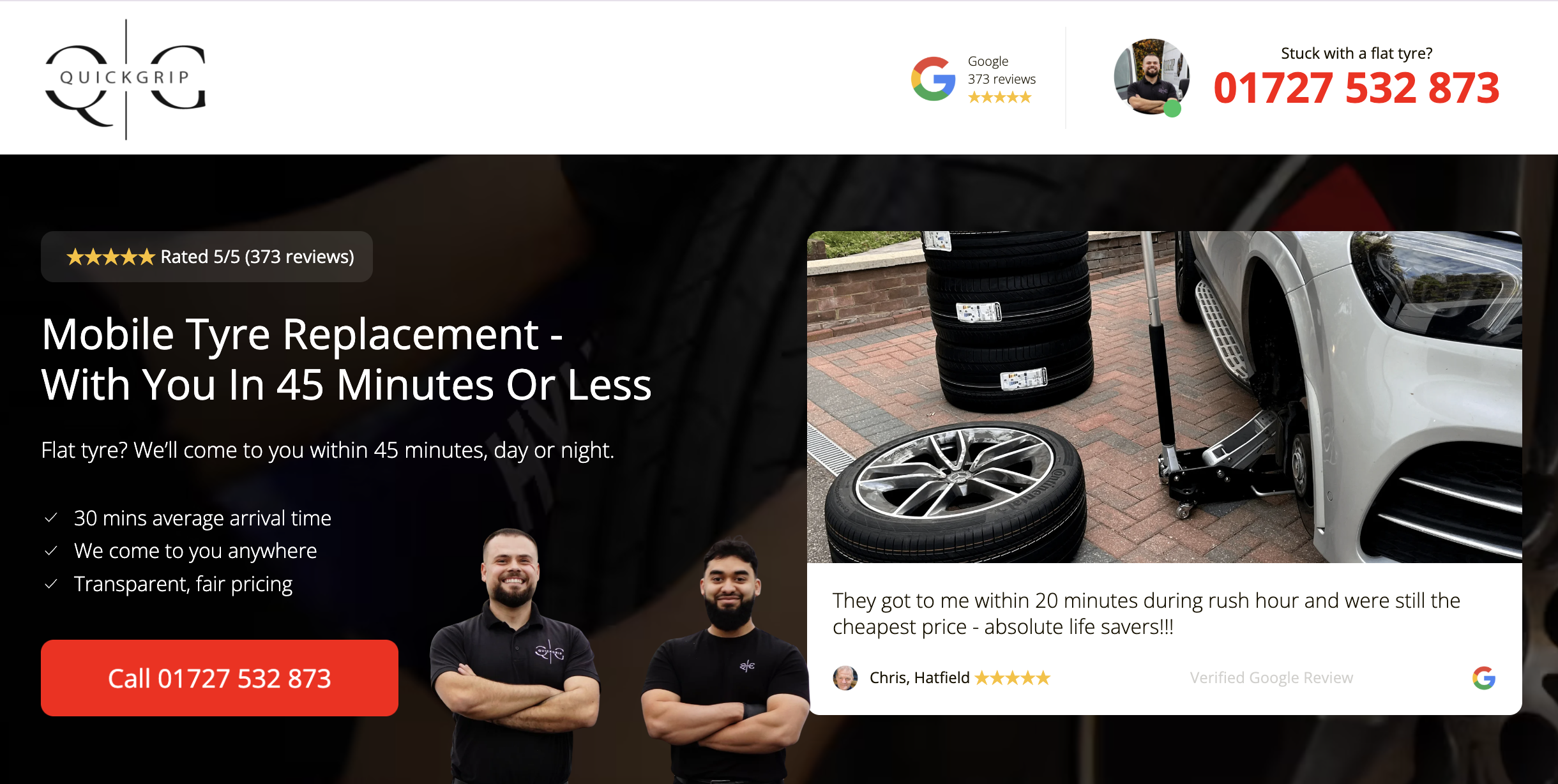 We also used QuickGrip's existing relationships with well-known tyre brands to add credibility to the page. Displaying those logos gave a small business the appearance of scale, which matters when competing against household names.